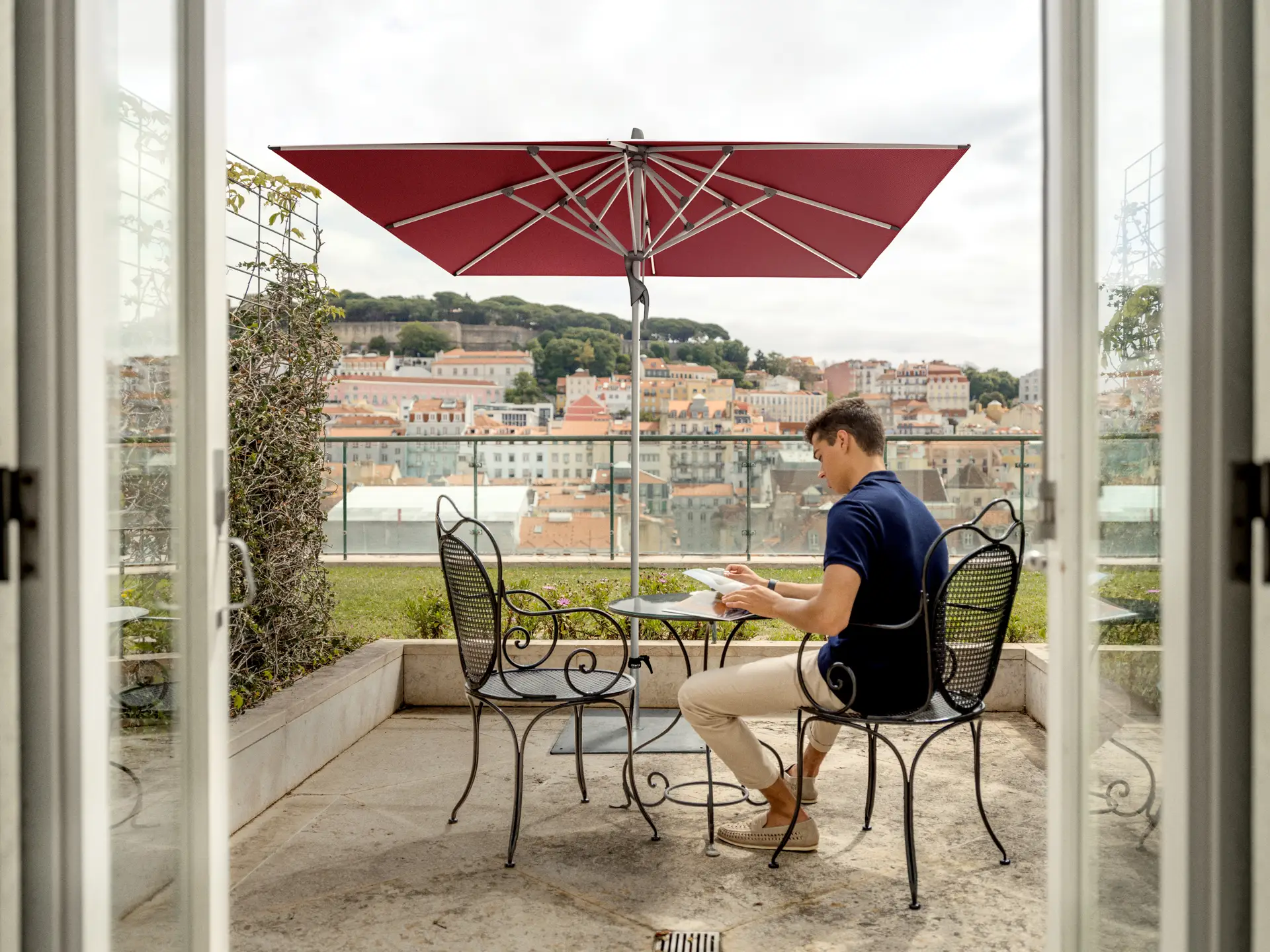 Le parasol géant FORTERO® est solide comme un roc: grâce à sa résistance au vent, ses dimensions et sa solidité, ce modèle de parasol s’adapte parfaitement aux larges surfaces et aux endroits venteux, et fait honneur à son nom. FORTERO® sous entendu le fort, est simple à manier. Il s’ouvre et se ferme facilement grâce au principe technique de contra – rotation. Son design simple et ses dimensions convainquent: le FORTERO® est idéal pour les grands espaces ou les bords de piscine. Pour la fixation, il y a le choix entre un socle en béton, en granite ou à roulettes, ainsi qu’avec un tube de fixation et diverses consoles murales également avec tubes de fixation inclus. Grâce à sa structure stable, le FORTERO® résiste au vent près des cours d’eau et en montagne.
